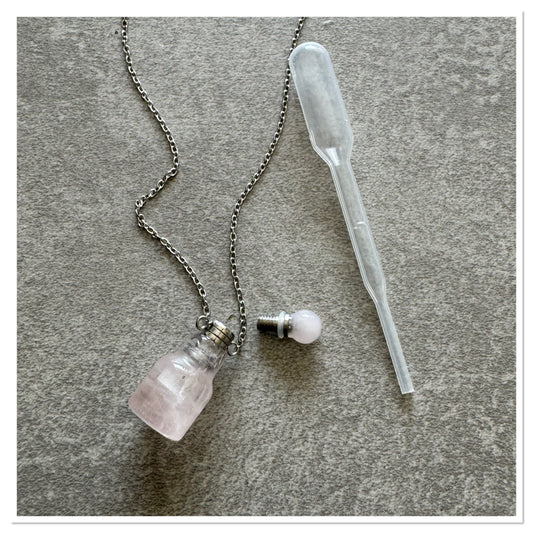 Collier fiole en Quartz Rose pour huile essentielle/ parfum - Pierre de l'amour et de l'amitié