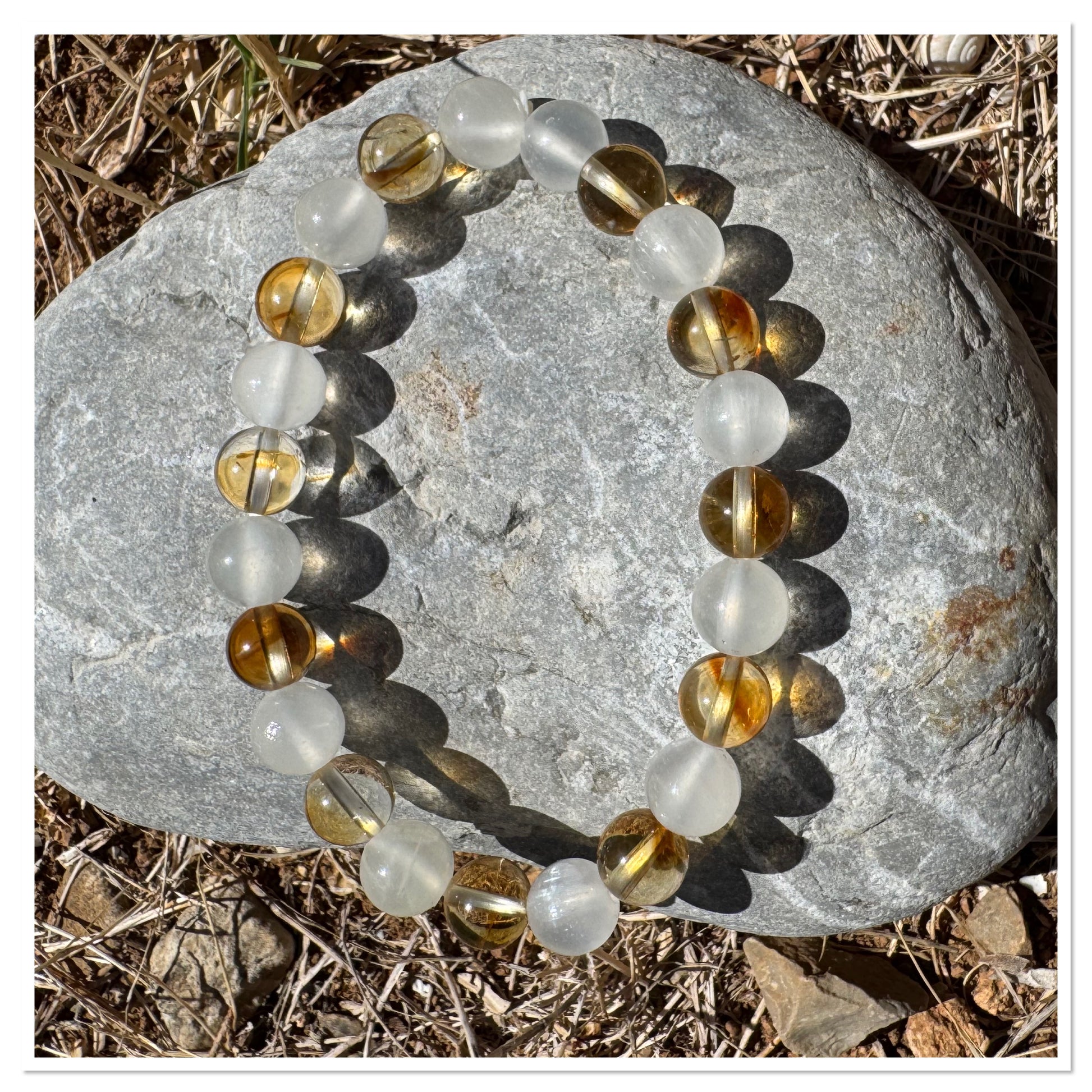 Bracelet mixte 8mm : citrine chauffée / Sélénite - Pérénnité et réussite