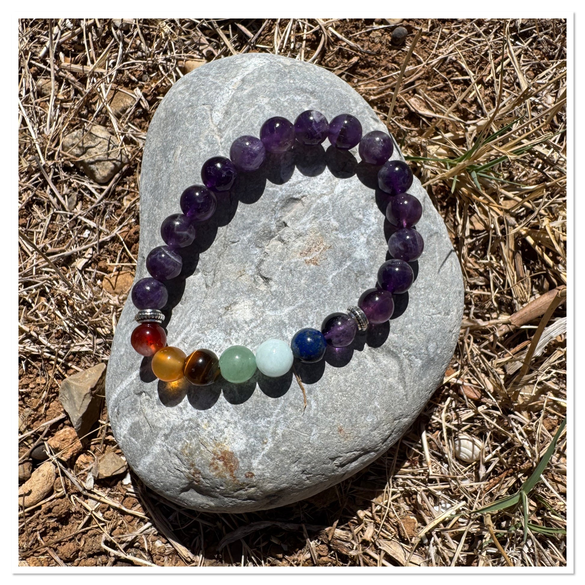 C'est ce que vous promets ce bracelet qui allie l'améthyste et les 7 chakras.