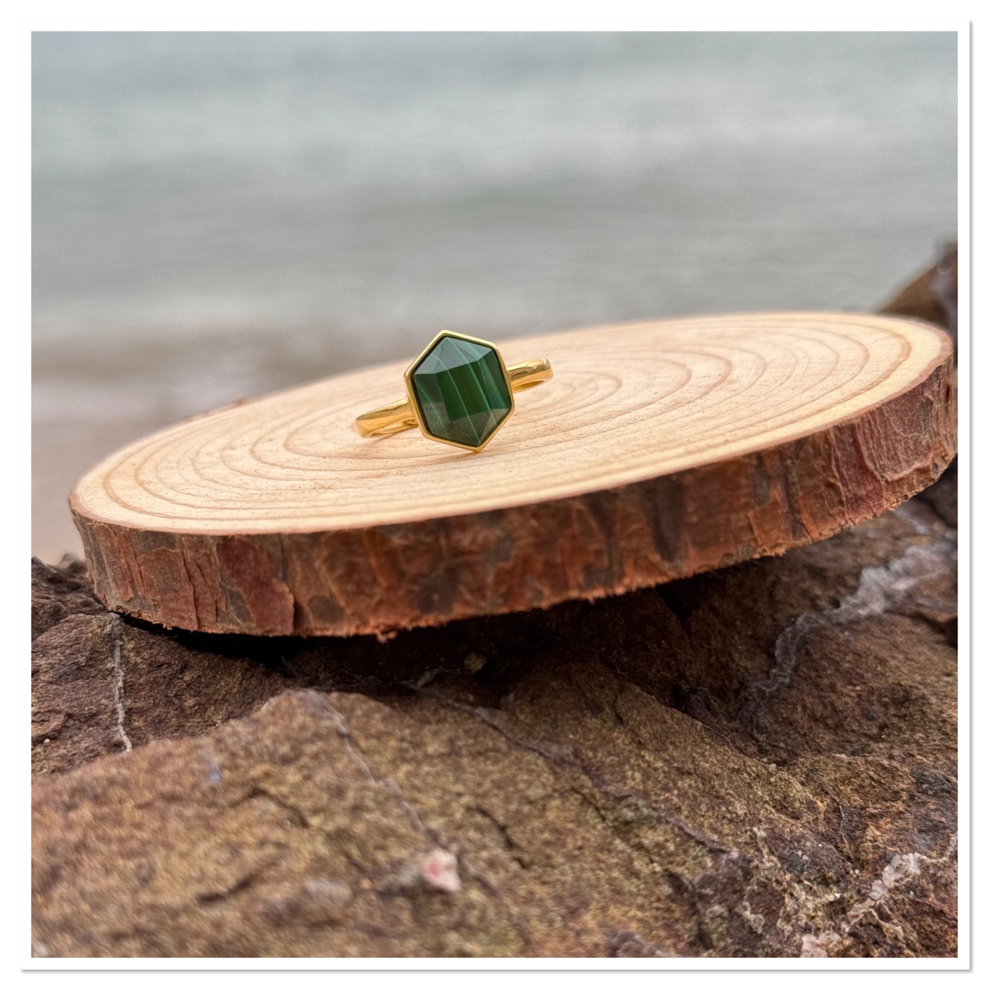 Bague Malachite "hexagonale" - Pierre Porte-Bonheur