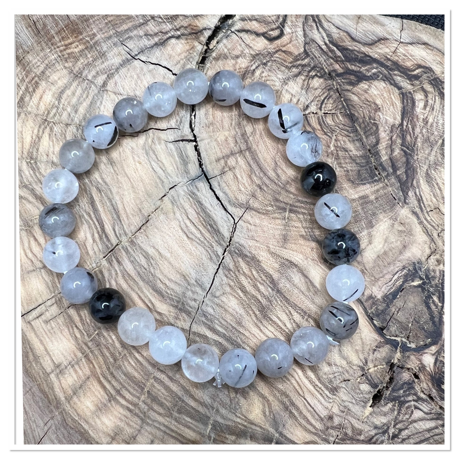 Bracelet Quartz tourmaline 8 mm - Cristal de protection et de l'épuisement nerveux